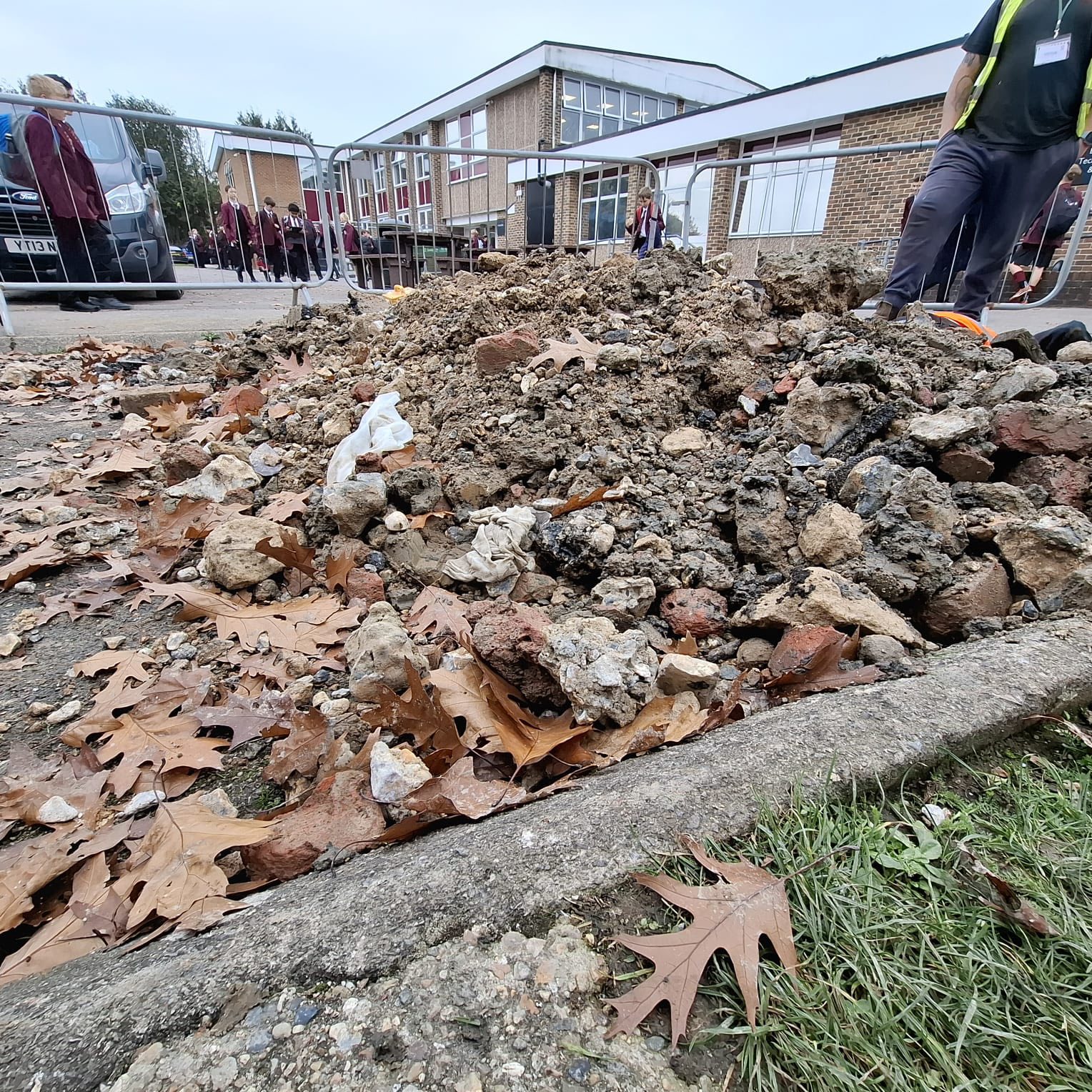 A big excavation carried out at a local school, to fix an underground pipe leak